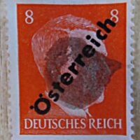 [...]Hitler geschwärzte Briefmarke 1945 mit „Österreich“ Aufdruck