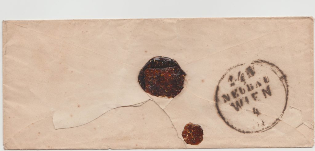 Der Brief mit der 10 Kreuzer Briefmarke wurde in Wien Neubau abgestempelt , und versiegelt .