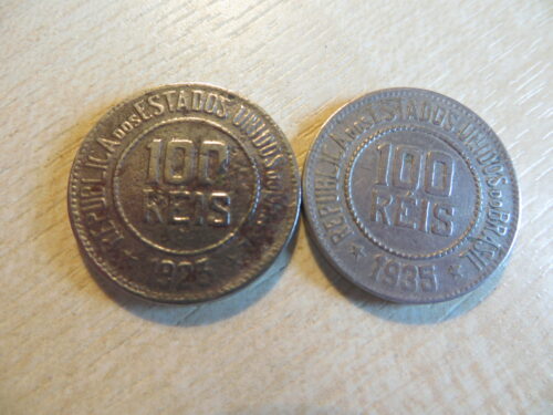 100 Reis 1923 / 1935 Brasilien – erste Republik (1889 – 1942) Rückseite zeigt einen Frauenkopf mit 21 Sternen. Die 21 Sterne stehen für die Bundesstaaten von Brasilien (zur damaligen Zeit gab es nur 21 Bundesstaaten in Brasilien – es gab noch nicht die Bundesstaaten: Roraima, Rondonia, Amapa, Tocantins, Mato gross do sul) heute sind … 100 Reis 1923 weiterlesen
