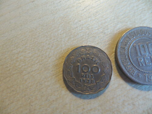 100 Reis 1938 Vargas Brasilien Diese 100 Reis Münze aus dem Jahre 1938 war schon sehr viel kleiner, auf der Rückseite eine Abbildung des damaligen Präsidenten Getulio Vargas – die Inflation hat schon begonnen – also kleinere Münzen – weniger Materialaufwand! siehe auch: 1000 Reis 1928 Brasilien 1000 Reis 1928 … 100 Reis 1938 Vargas weiterlesen