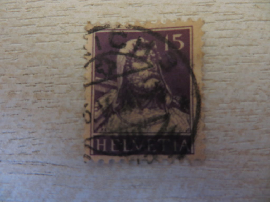 Eine Wilhelm Tell Marke zu 15 Rappen die mit einem Stempel zu einer 20 Rappen Marke überdruckt wurde – ziemlich selten.