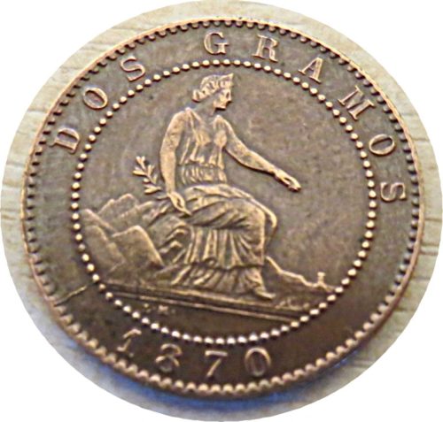 2 centimos 2 gramos 1870 Münzen Spanien