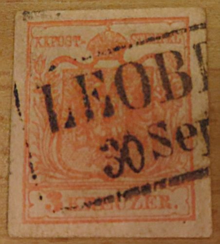 3 Kreuzer 1850 ziegelrot – Leoben Poststempel