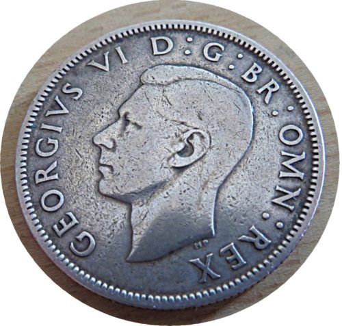 Diese 2 Shilling Münze aus Großbritannien zeigt den Kopf von König Georg VI.