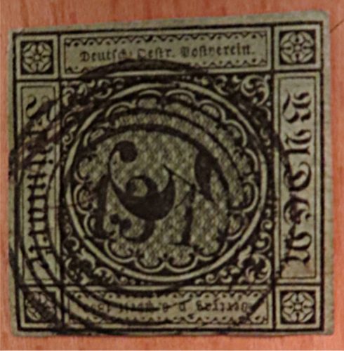 3 Kreuzer Baden 1853 – schwarz auf grün – Fünfring – Nummernstempel 131