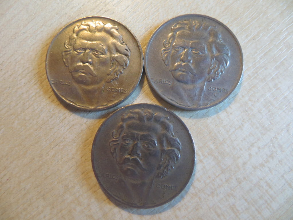 3 seltene Münzen zu je 300 Reis, Rückseite Abbildung des Komponisten Antônio Carlos Gomes – siehe WIKI