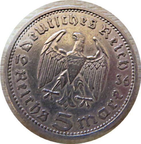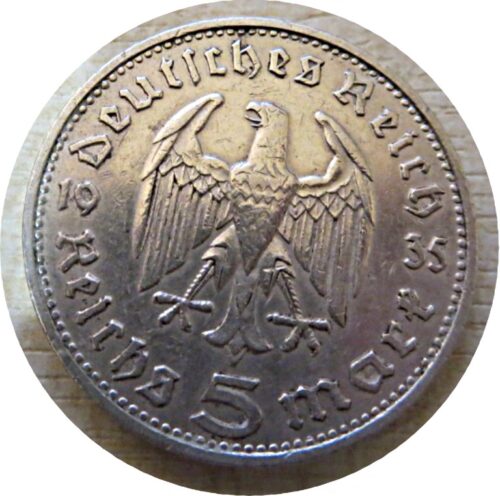 5 Reichsmark 1935 / 1934 Hindenburg – Silbermünze Deutschland