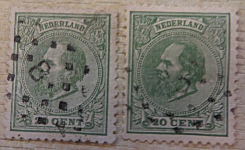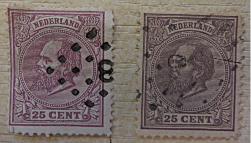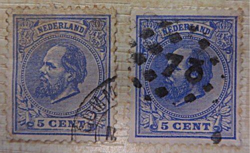 1 cent gruen 1872 / half cent braun wappen 1871 – Holland Briefmarken