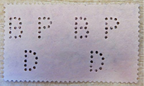 ten shilling stamp Edinburgh Castle Elizabeth II. – perfin