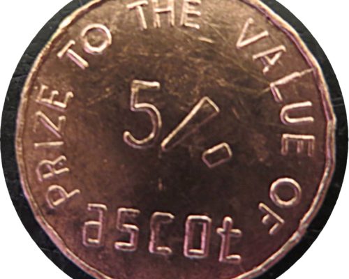 Ascot Token „prize to the value 5 „ Ein Jeton von Ascot – rar und alt – Währung wahrschein Shilling – 19. Jahrhundert Die Rennbahn in Ascot (engl. Ascot Racecourse) ist eine der ältesten Pferderennbahnen in Großbritannien – siehe WIKI Mit diesem Jeton konnte man wahrscheinlich einen Snack oder etwas zu trinken bekommen auf der … Ascot Token „prize to the value 5 „ weiterlesen