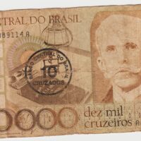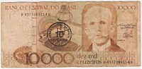 10000 Cruzeiros 1990 mit Stempel 10 Cruzados von 1990 – RUI BARBOSA