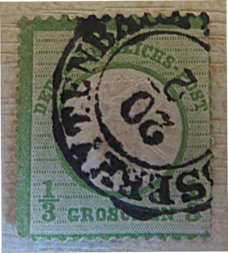 3 Kreuzer Baden 1853 – schwarz auf grün – Fünfring – Nummernstempel 131