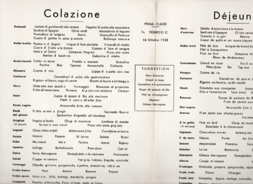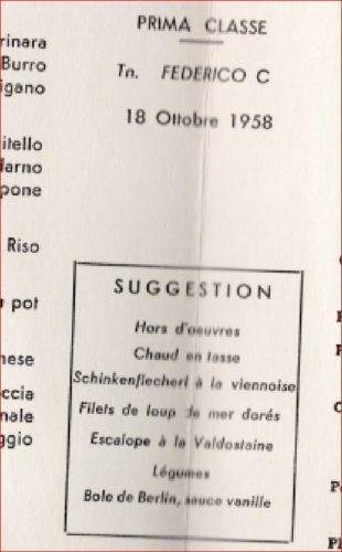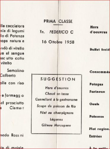 Menu De Barco Linea C – Federico C – (Costa Crociere) – prima classe 1958
