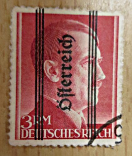Hitler geschwärzte Briefmarke 1945 mit „Österreich“ Aufdruck
