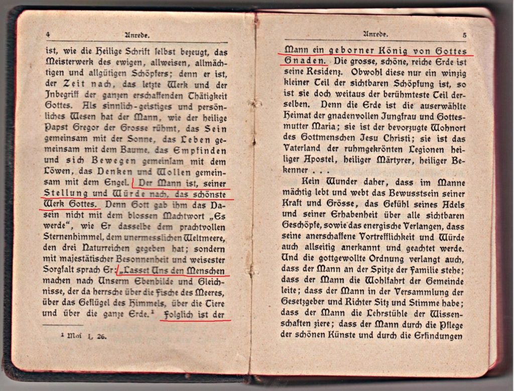 Auszug: …..Der Mann ist, seiner Stellung und Würde nach, das schönste Werk Gottes.