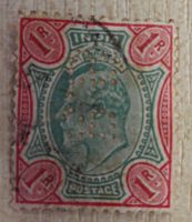 1 Rupee british India PERFIN Die Briefmarke stammt aus Jahren 1902- 1903, als Indien noch unter der britischen Herrschaft war,