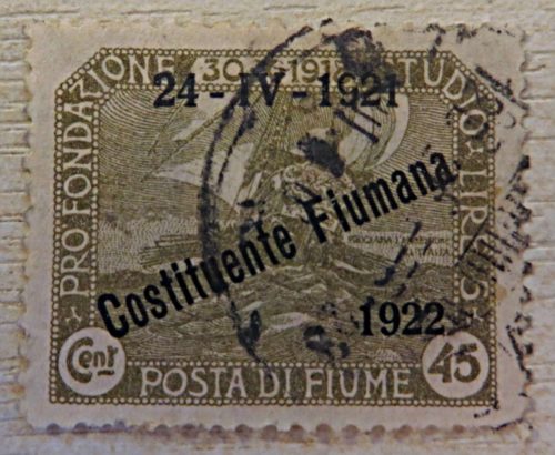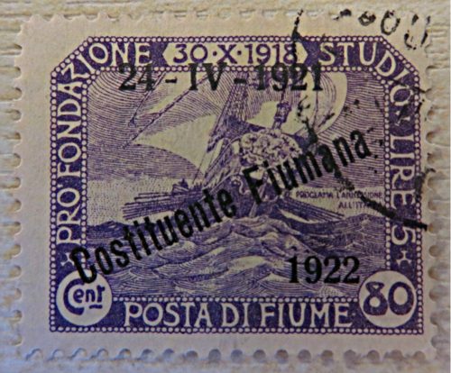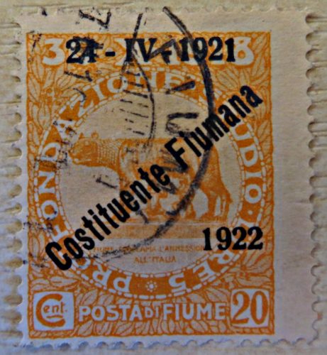 Die Briefmarken von 1919 wurden mit Centesimi / Lira überdruckt am 24.4.1921 mit „Costituente Fiumana 1922 – italienische Truppen kontrollierten Fiume – siehe WIKI