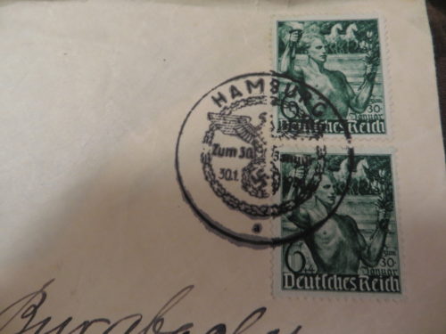 Ersttags-Sonderstempel 6+4 Pfennig 5. Jahrestag der Machtergreifung durch Adolf Hitler Abgestempelt wurde dieser Brief genau am 30. Jänner 1938 in Hamburg – ein wirklich seltener schöner Ersttags-Sonderstempel! Hitlers Machtergreifung war ja am 30 Jänner 1933 – dieser Poststempel stammt genau 5 Jahre danach…….. – siehe WIKI Diese Briefmarke wurde zwar am 28. Jänner 1938 gedruckt, … Ersttags-Sonderstempel 6+4 Pfennig 5. Jahrestag der Machtergreifung durch Adolf Hitler weiterlesen