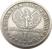 [...]1 Drachme 1973 Revolution 21. April 1967 Griechenland Münzen greek coins griechische Münze die es nur von 1967 bis 1973