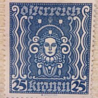 25 Kronen blau Frauenkopf gestempelt ungestempelt aus dem Jahr 1922 / 24 – seltene österreichische Briefmarken aus der Kaiserzeit