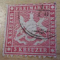 - Tagged with: 3 Kreuzer 1865 Wappen von Württemberg - Freimarke