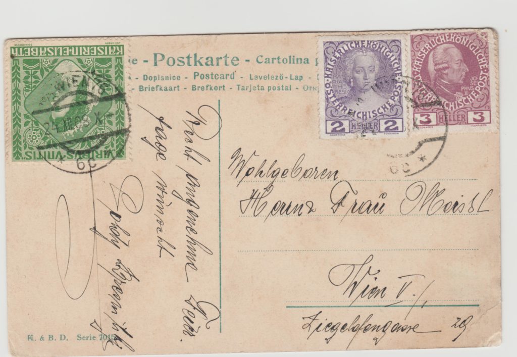 2 1/2  Kronen plus 10 Kronen 1913 – Ganzstück Kaiserzeit Österreich / Philatelic cover Austria