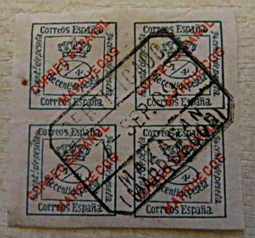 Zeitungsmarken Spanien 1873 bis 77 – Zeitungsmarke spanisch Marokko ,Block geschnitten
